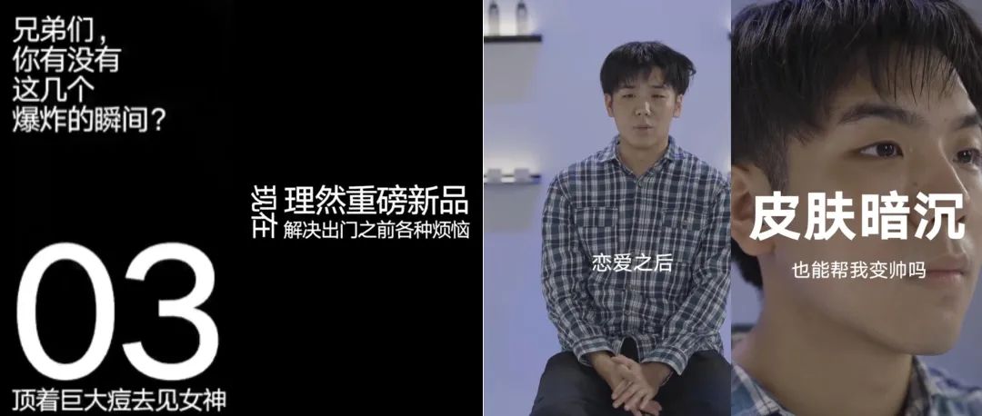 比如,做男士个护的理然曾经发过一组片子,打的就是恋爱中的男性出门女朋友觉得自己不够帅的心理,推他们的“一分钟解决出门前烦恼”的新品。