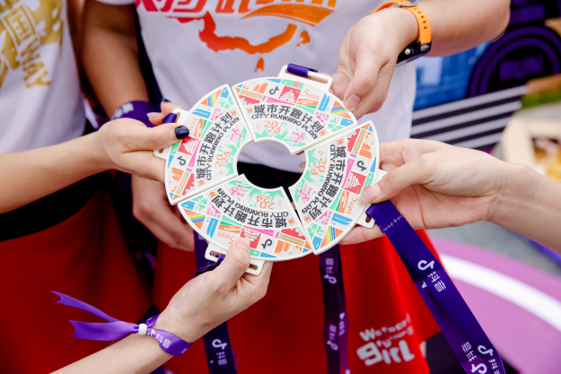 根据每个城市不同的地域文化特色,抖音还策划了具备代表性的跑步路线,并设置创意打卡装置,增添跑步过程中的趣味性和互动感,同时让品牌创意融入户外运动场景中,有效拓宽品牌传播的半径。另外,每位跑完全程的用户,抖音都会颁发跑团奖牌作为纪念,满足跑者们的情绪价值需求。