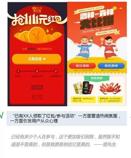 (利用用户的从众心理,包括拼多多购买页面显示的“XX用户已经参与的拼单”的跑马灯也是这个意思)