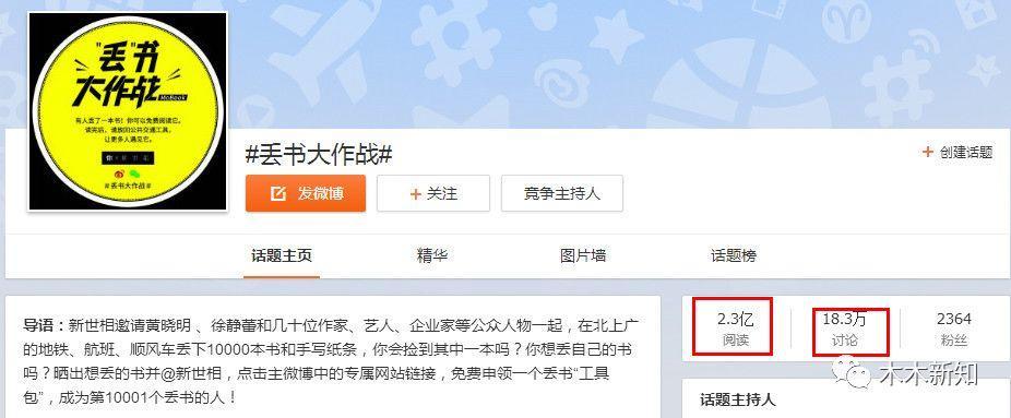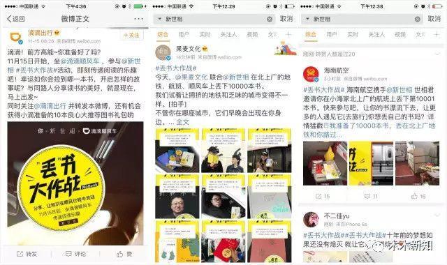 发起活动#丢书大作战#,早期在意见领袖里爆发,明星、大V、公共交通服务方、媒体、出版社等在平台进行传播。