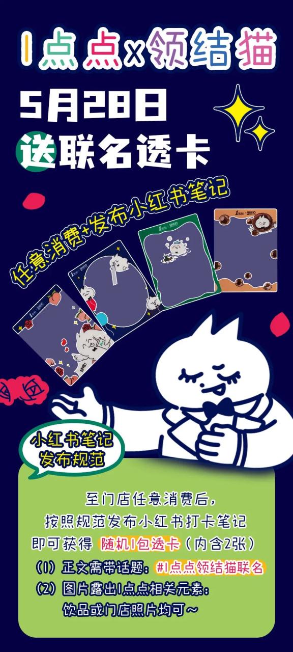 5.28起,到店任意消费+小红书打卡即可免费得1袋透卡,到店购买2杯饮品送杯提,全平台购买任意饮品得杯套。联名套餐含:饮品2杯+杯套2个+刮刮乐贴纸2张+透卡1包+杯提1个。