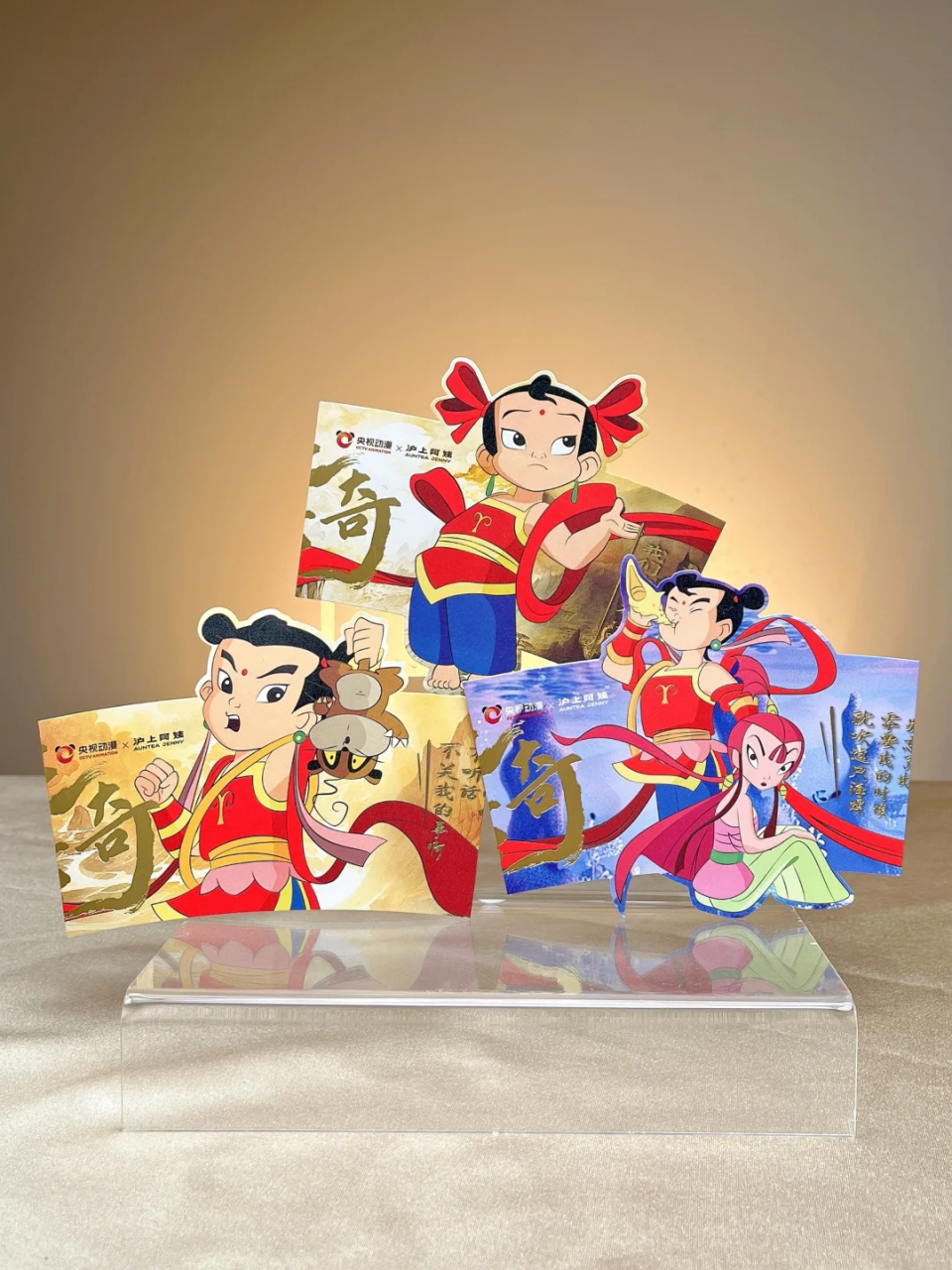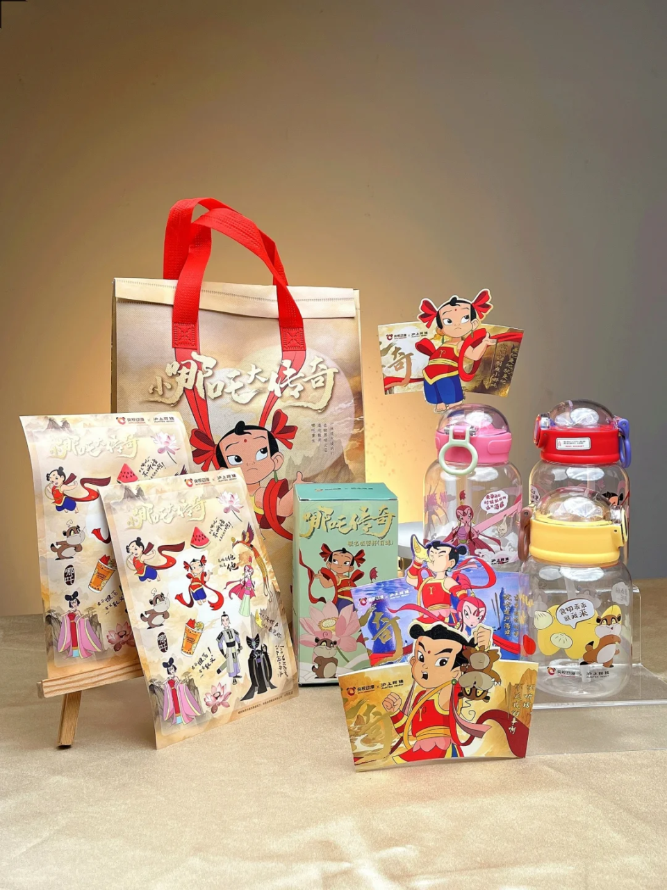 沪上阿姨选择联名90后的童年动画片《哪吒传奇》,推出大桶系列果茶,联名周边涵盖盲盒吸管杯/贴纸/烫金杯套等,包含经典场景。