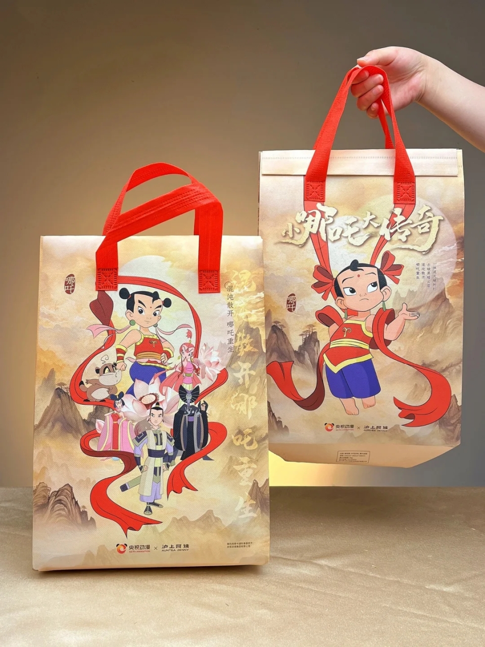 有意思的是,保温袋上的混天绫恰好延伸成提手。拎着奶茶袋仿佛拎着哪吒。