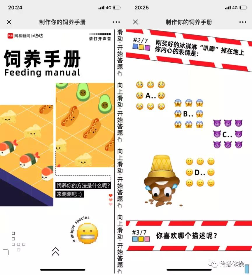另外,就在写这篇文章时,网易新闻与哒哒团队出品的《饲养手册》H5正在传播。尽管这支H5体验做的很不错(甚至我们都有转发朋友圈的冲动),但我们依旧对H5的营销前景感到悲观,我们并不建议品牌跟风尝试做H5。