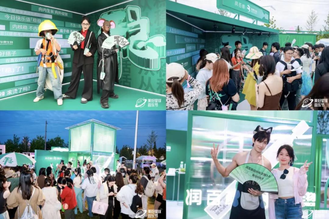 与此同时,演出合作伙伴“润百颜”在活动外场设置了专属展区,为到场观众提供拍照互动、上脸体验、小样放送等趣味体验。这么做既契合活动的潮流美好心智,又能在热烈氛围中和观众面对面沟通,“借势”拉近品牌产品和观众的距离。