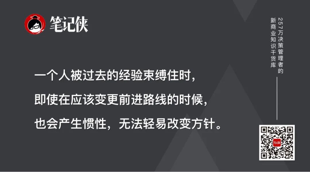当面临下一个课题时,他们却看不到状况已经发生了变化,而是找到之前成功的原因,这次也打算照做。局面越困难,人们就越容易想起过去的经验,重复同样的做法。
