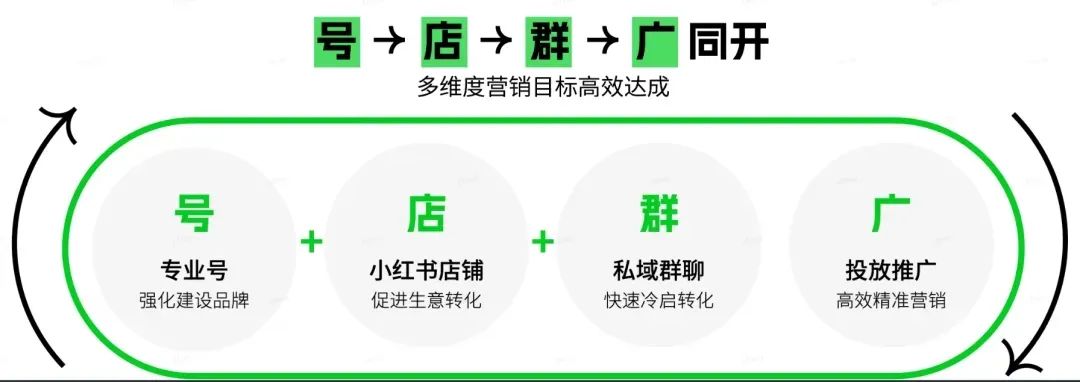 小红书官方广推“号店群广”同开,小红书的一体化营销布局,通过四步一掌握,商家能完成专业号+小红书店铺+私域群聊+投放推广同开。