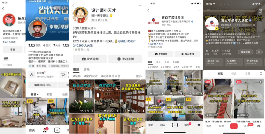 喜百年的品牌账号主要提供装修知识和实景案例,还开辟了装修大讲堂,输出用户所关心的省钱和避坑类内容,优质视频播放量通常可以达到千万级。比如,“装修中最不值得花钱的7样东西”、“新房装修改水电牢记这8点”,等等。