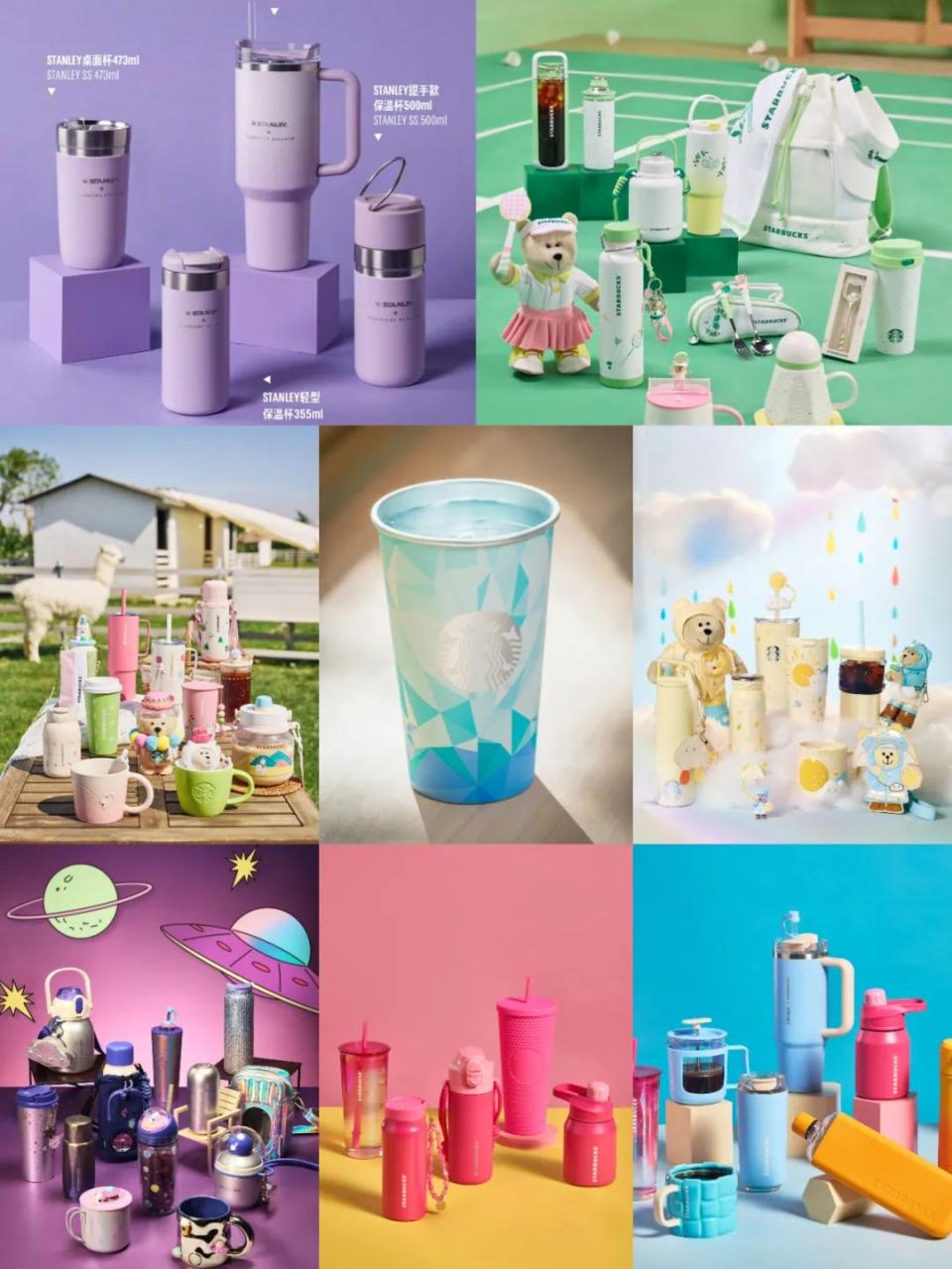 夏日冷饮“标配”的星巴克冷变杯,不同风格、色系以及不同元素的多巴胺色彩、多巴胺桃红、夏夜空、多肉花园、晴雨系列的星杯,聚焦奥运会等重大赛事以及全民运动趋势而推出的活力羽毛球系列星杯,为养生族、品质生活消费者打造的甄选Stanley不锈钢保温杯,以及一直更新设计一直深受消费者欢迎的羊驼乐园系列星杯……可见,星巴克对杯子营销的重视程度。