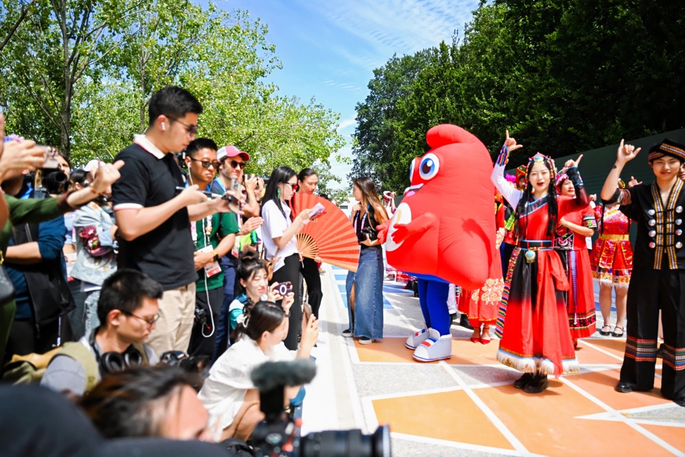 在快闪活动中以传递民族文化作为主线,在方言告白中则以集体荣耀为重心,让更多人和运动健儿站在一起。
