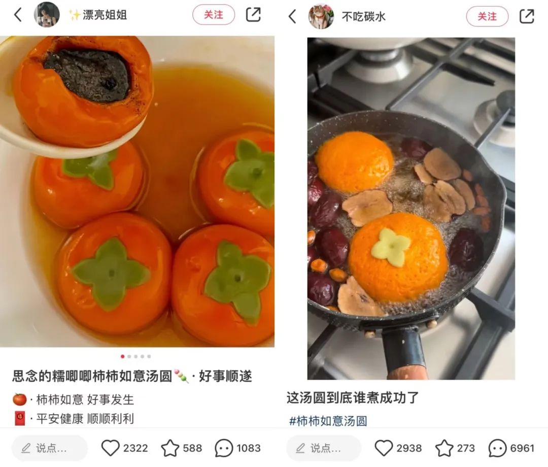 我刷到的内容也很丰富立体,从求好运、尝新口味晒美食到怎么煮才能成功,只用一款小汤圆就撬动了大量的 UGC 内容。