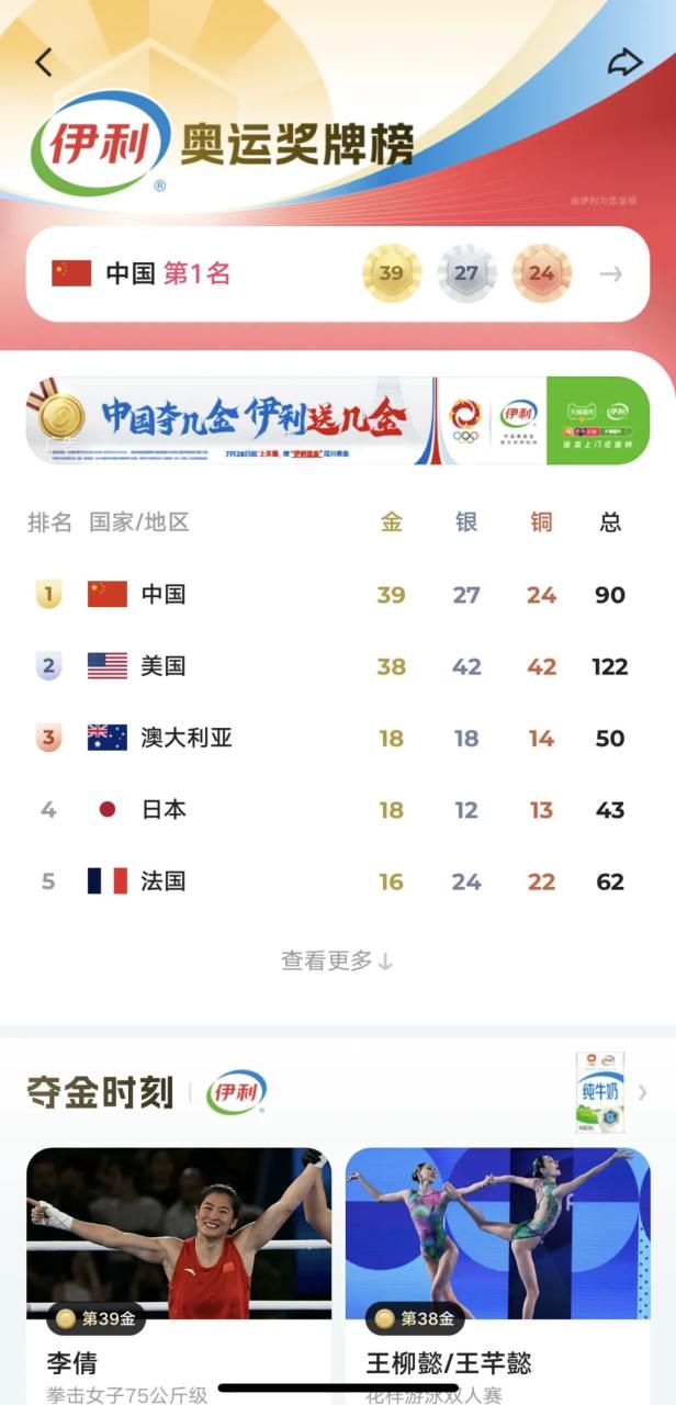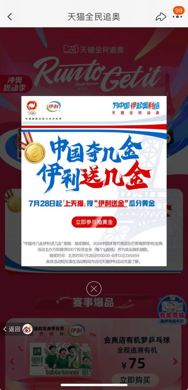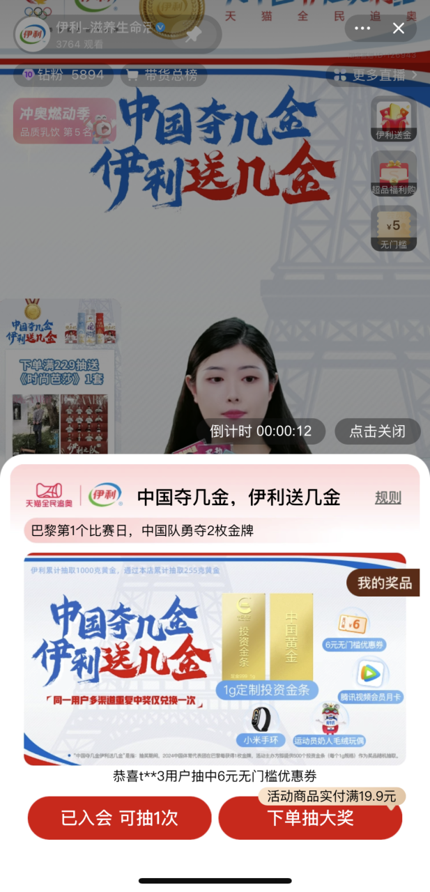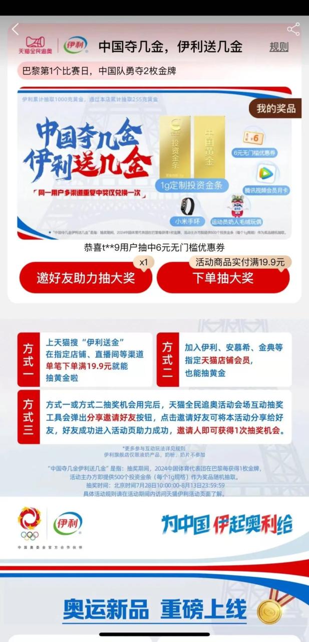 通过“送金+免单”活动,伊利将夺金的荣耀、获奖的喜悦,以最直接的方式,分享给每一个支持中国体育代表团的人。这一突破惯例的互动玩法,把大众为奥运、为健儿加油的体验感拉满。