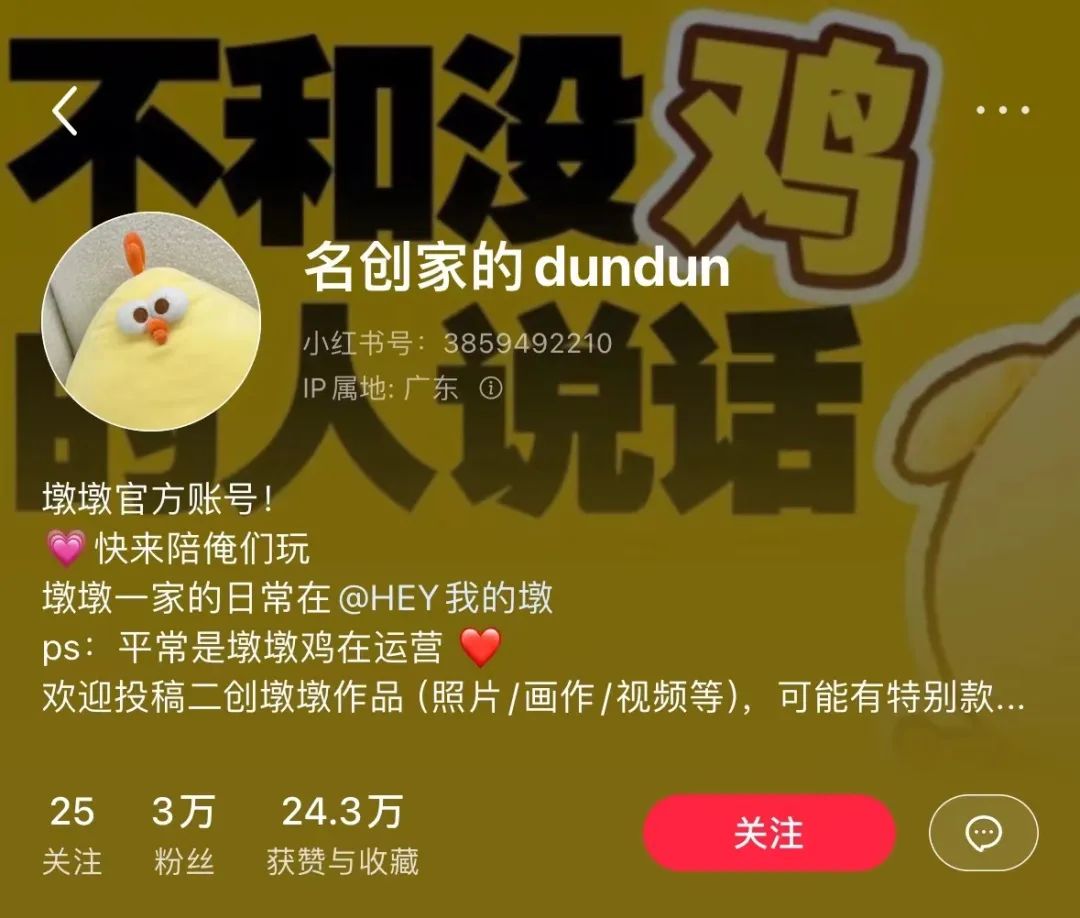 DUNDUN鸡是名创优品在2021年4月推出的原创IP。早期因名创优品店员将其作为店内产品模特的趣味展示,而走红网络。