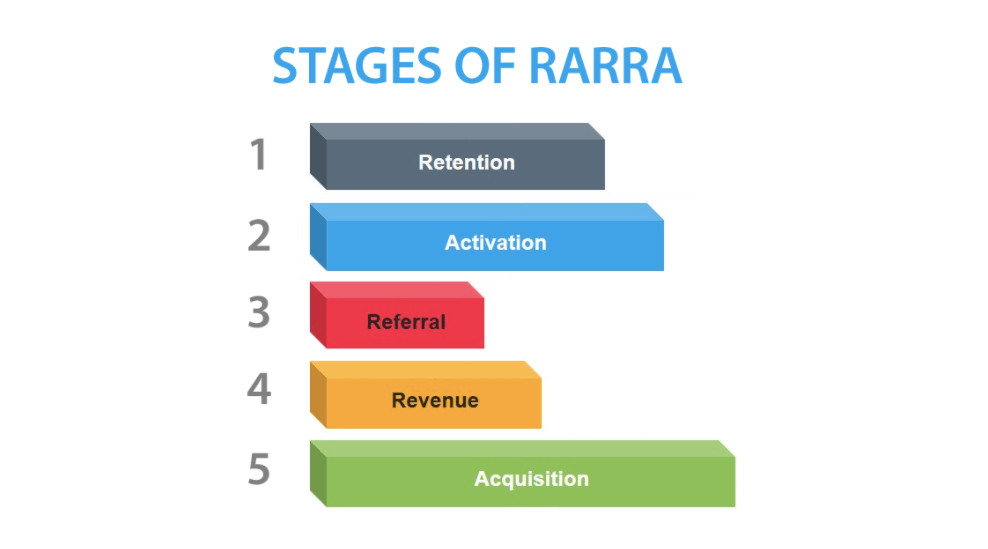 显然,现在黑客增长的关键在于用户留存,而不是获客。所以我们需要一个更好的模型,那就是RARRA模型。这个模型是对经典海盗模型的优化和增长阶段的重新组合,把留存和激活前置,获客做为增长的最后一个阶段。