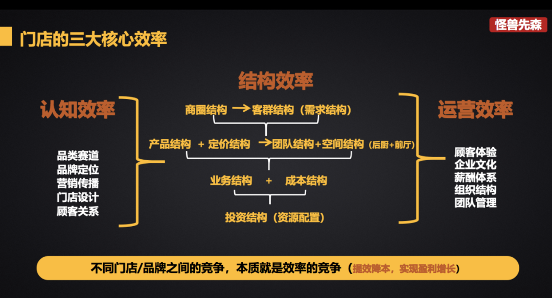 之前看到眉州东坡的董事长讲了一句话:“结构效率一定是大于运营效率”。这里指出了结构效率是大于运营效率。