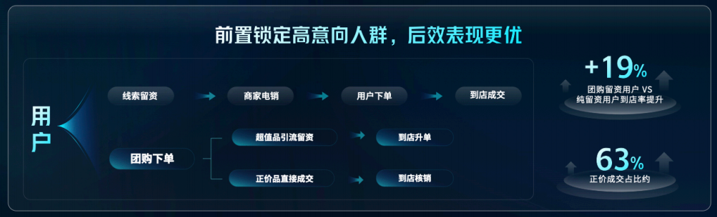 针对线索生意之“断”:一方面,团购用户原本就是高消费意向用户,到店意愿度更高,更容易完成线上→线下的流转;