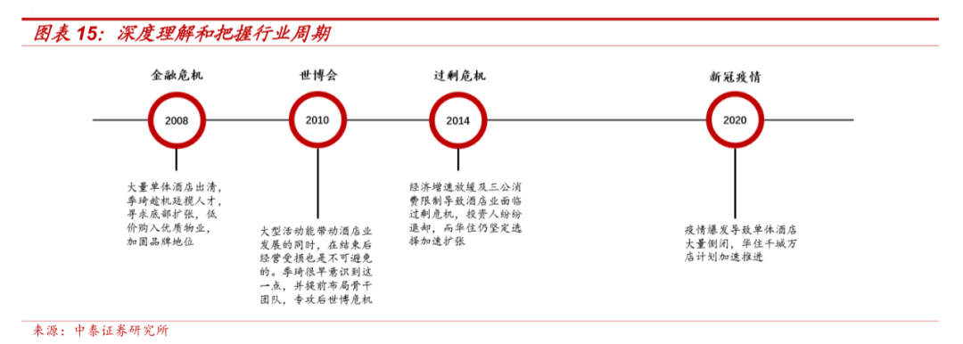 逆势扩张,是华住成为一哥的关键词。据中泰证券,华住至今展开过四次反周期扩张,成功抄底酒店行业。