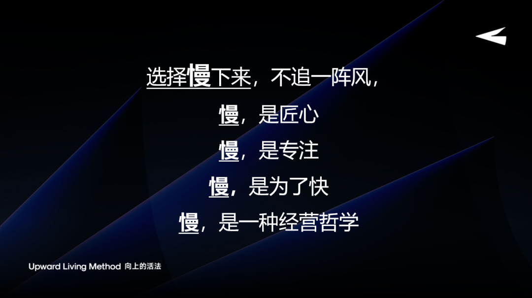 这里的“慢”不是速度上的慢,而是督促品牌静下心来专注于自身所长。不畏浮云遮望眼,清晰地认知到自身优势,明白哪些是需要打磨的核心资产。