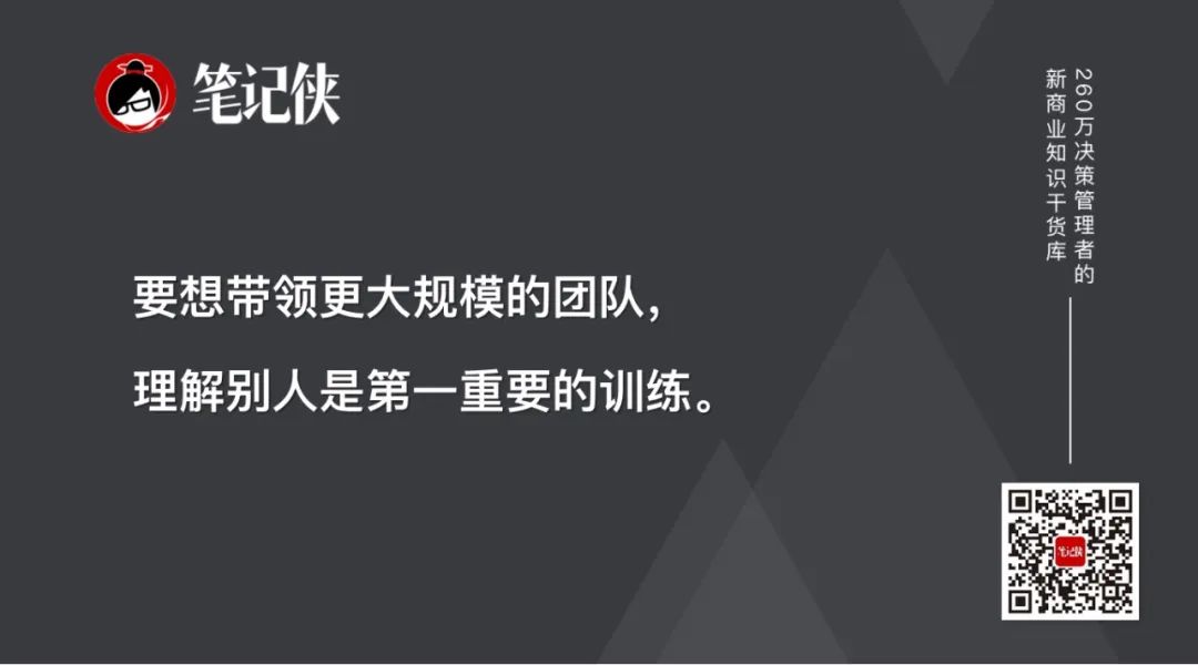 记住,要想带领更大规模的团队,理解别人是第一重要的训练。