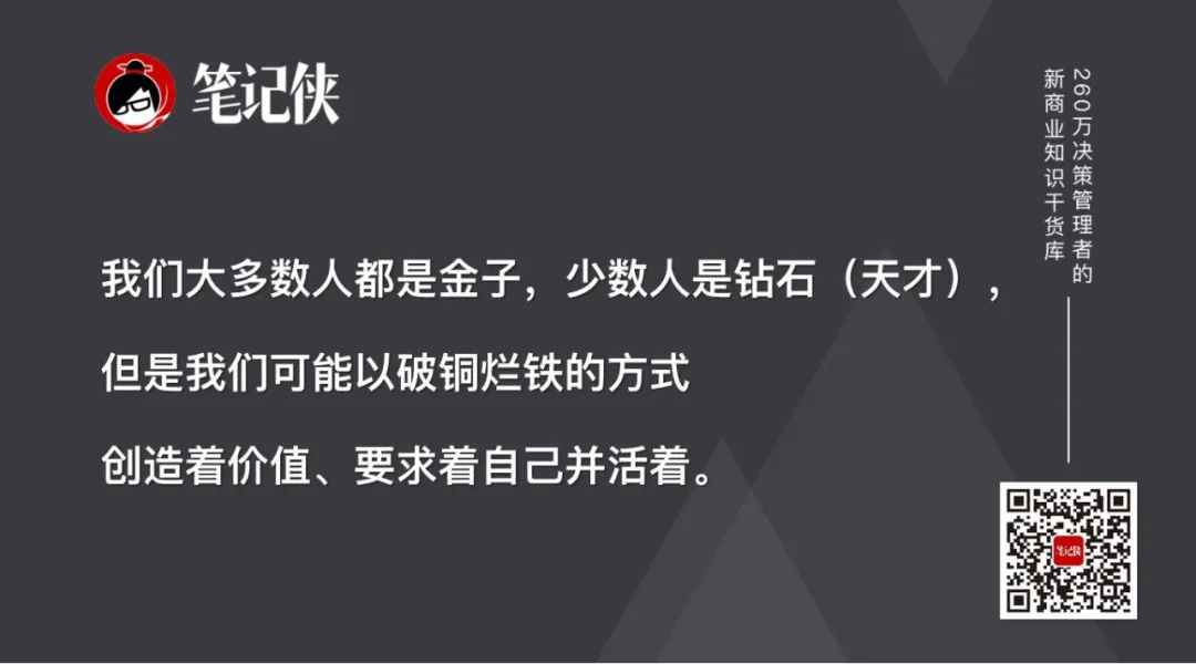 实际上,我们大多数人都是金子,少数人是钻石(天才),但是我们可能以破铜烂铁的方式创造着价值、要求着自己并活着。这个世界也并不缺少金子,真正缺少的是拥有第三级自信的人,把金子还原成本来的面貌。