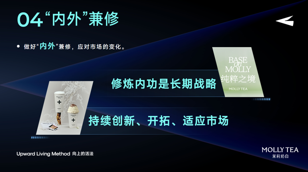 未来我们还是会更聚焦于产品创新、市场拓展、服务优化以及品牌建设。回归以茶为本味的出发点,探索更创新的多重风味,希望通过全球化布局,让更多年轻人接触和喜爱中国茶,推动东方茶饮文化走向世界,将是茉莉奶白未来持续思考的命题。