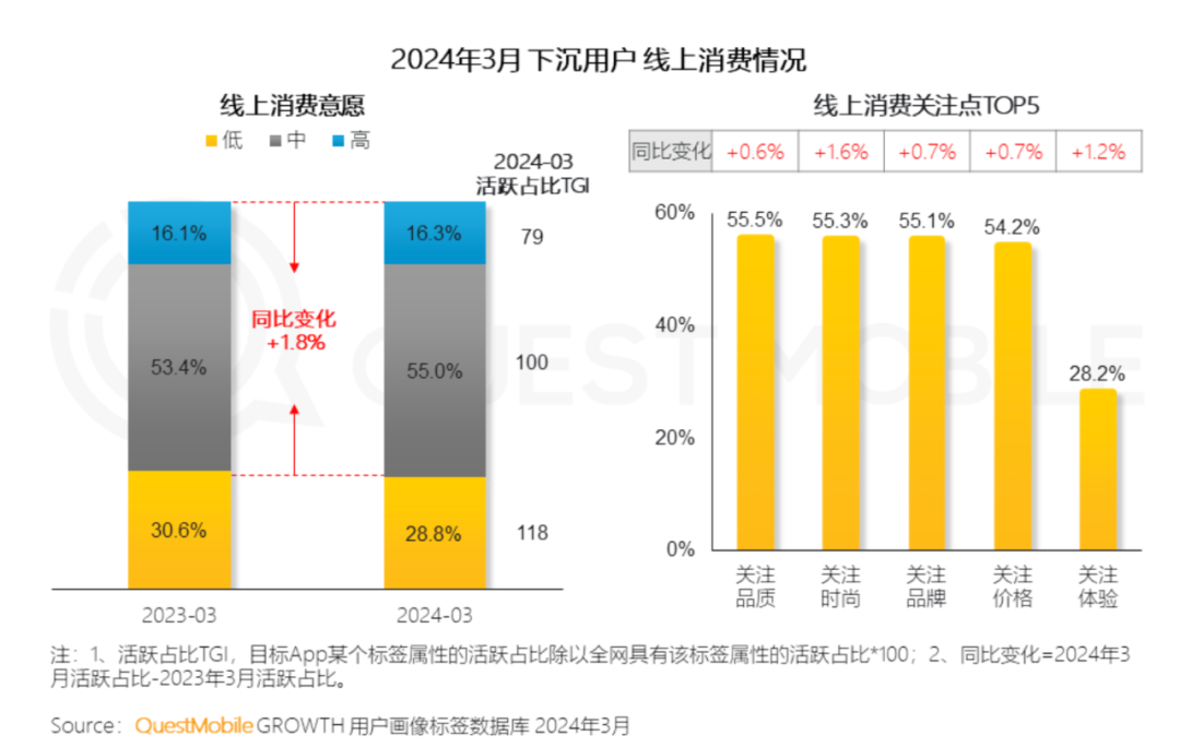 QuestMobile报告显示,截至今年3月下沉用户在线上消费意愿中高水平的占比超八成,且消费倾向还在持续增强,向品牌展现出了极强消费潜力。所以你常能看到,不论星巴克还是国内的新茶饮品牌,近些年来都在快速下沉拓店;山姆也更关注下沉市场,加速布局省会城市及经济较发达的三四线城市。
