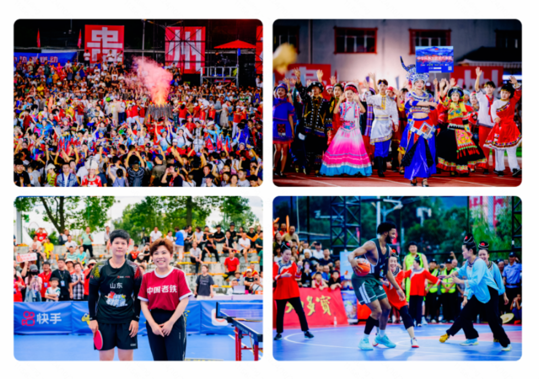 快手一直是版权赛事+群众体育两手抓,近些年来将群众赛事办成了全网出圈的大IP,比如今年村奥会在贵州主赛区相关话题播放量超过54亿。品牌能参与进去,就已经把握住了影响力颇高的营销大事件,而在此基础上快手还探索了不少创新营销玩法,品牌既能在线下与真实用户互动沟通,也在线上提振了品牌声量和销量。