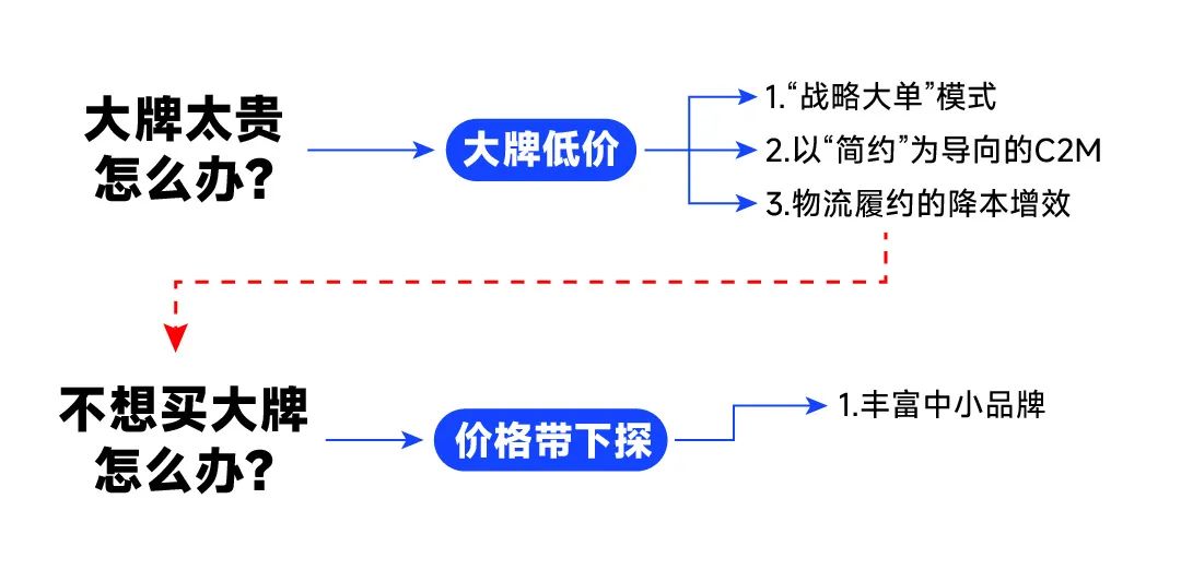 “战略大单”的模式。以“简约”为导向的C2M。物流履约的降本增效。