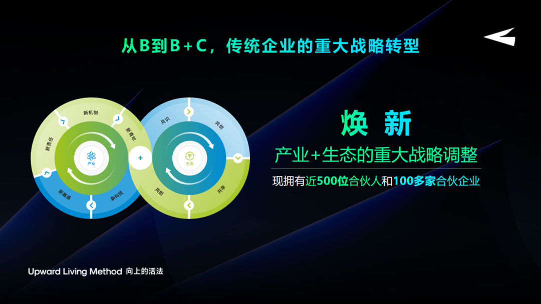 当时我们就做了一个重大战略转型,从B端转变为B+C,从单纯产业企业转变为产业+生态。