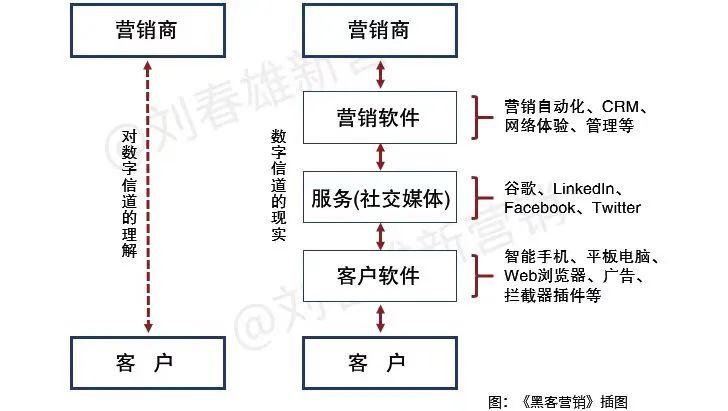 肯定要逐步告别传统营销了,但电商肯定不是全部。电商的真相,我在看《黑客营销》时有一张图,就是下面这张,突然明白电商去中间化是假的。这个话题老苗撕得比较准比较狠。