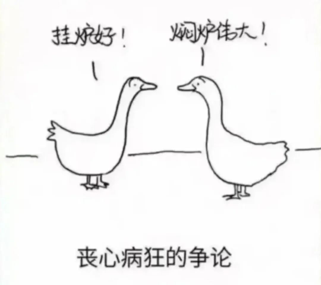 下面是营销专家苗庆显文章里的一张图。一群鸭子讨论烤鸭怎么烤好吃。
