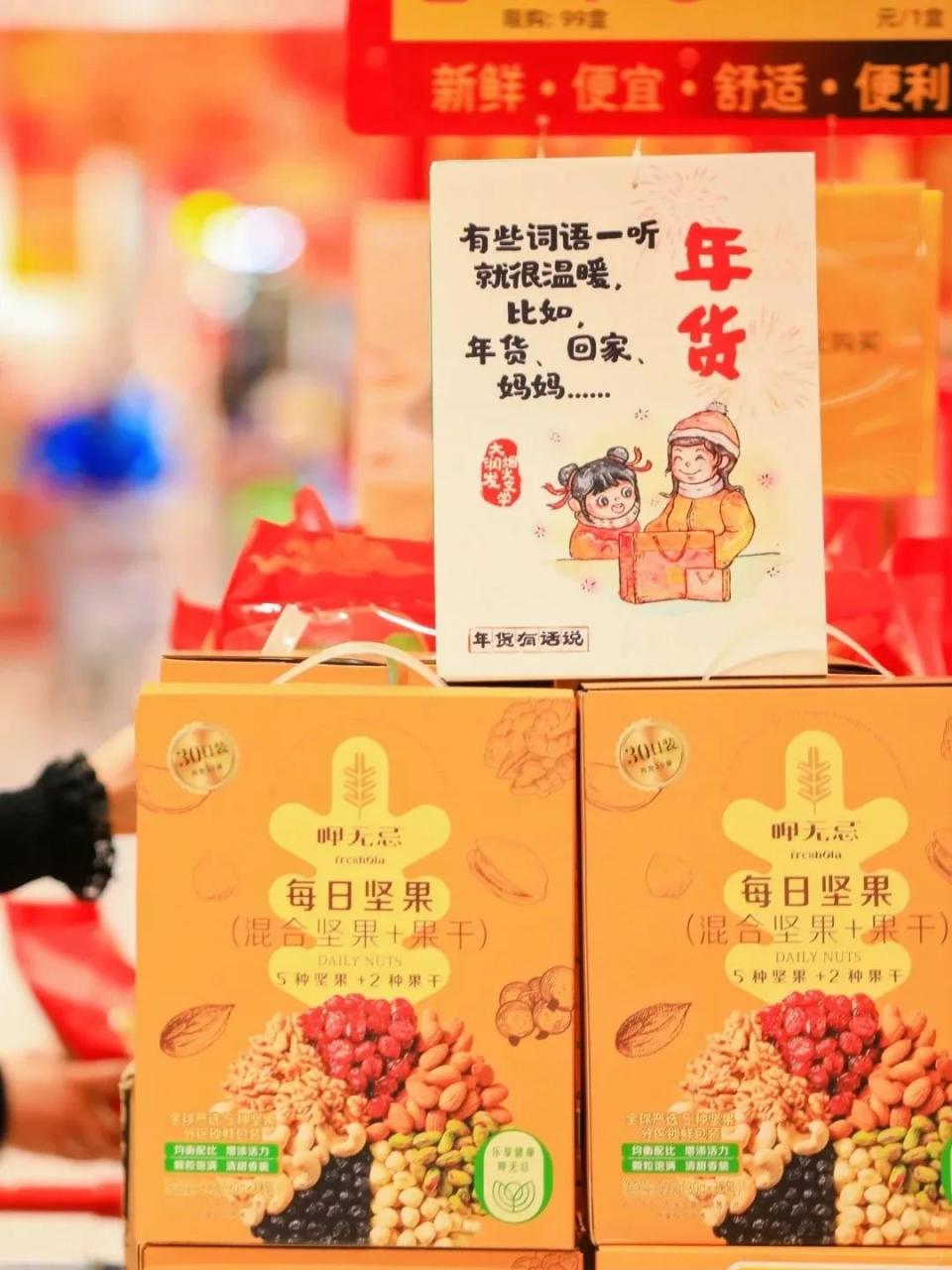 二来可以根据消费者在春节见的人做营销。一年在外,春节回家陪伴爸妈成了常态,去年大润达抓住健康趋势凭借「做爸妈的健康搭子」的新春议题脱颖而出,让年货成了情感表达的又一媒介。