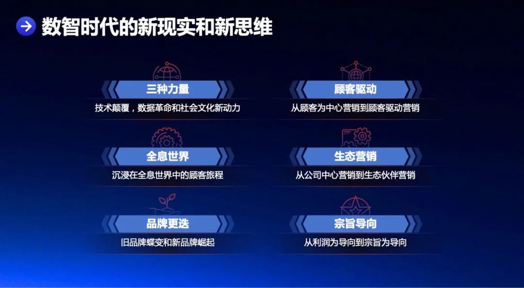 在当今数智化时代,我将新的现实、新的营销基础设施和新的思维概括为以下六个方面: