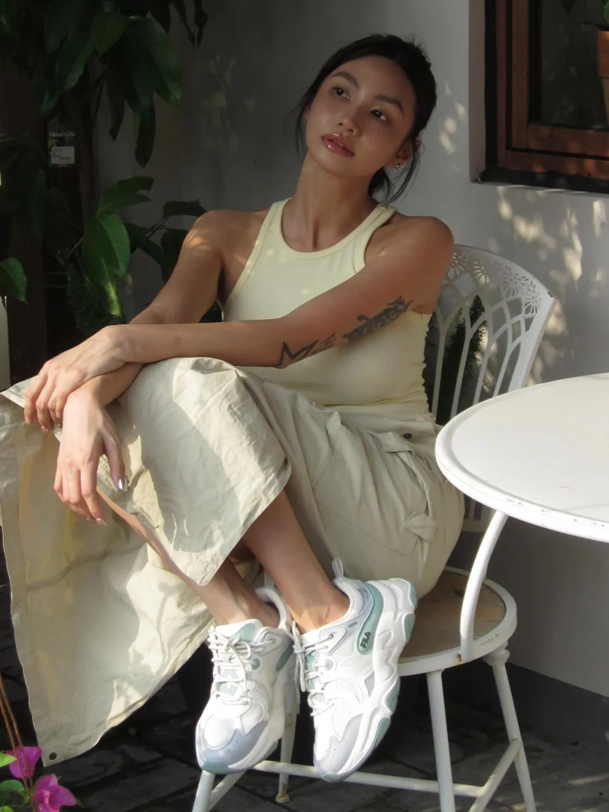 老爹鞋有个最大的特点,同时也是最常被人诟病的地方——体积大。这虽然会衬得小腿纤细修长,但视觉上并不合脚,真像小孩偷穿了老爹的鞋。