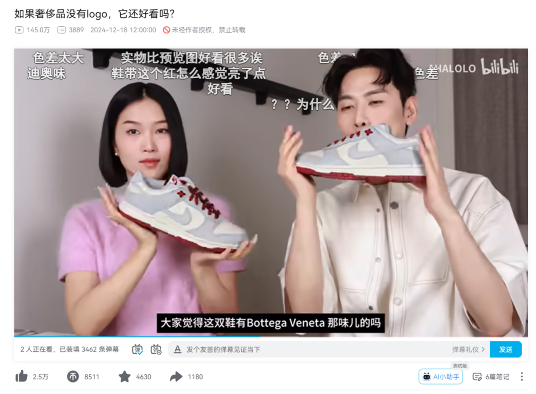 反观耐克,它在看到双旦与B站合作的效果以后,春节期间又与B站鞋圈Z哥携手打造了一个「新年福利直播间」。这个直播不是其他平台那种叫卖式的直播,而是深度的内容直播。
