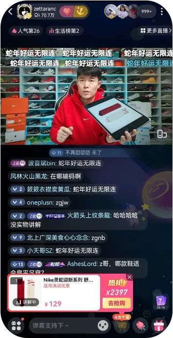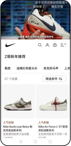 Z哥作为知名鞋类测评UP,在直播中集合了耐克年度好鞋,对其设计理念、穿着场景等进行了专业解析,深层次传递了产品价值。它不拘泥于产品叫卖,不依赖价格促销,而是用内容撬动用户,高效种草并转化,整个直播赢得800W人气,多个款式售罄。