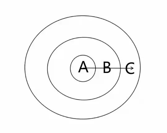 原点人群就像是水面上的涟漪,一层层延伸为更大的圆。处于核心位置的人群会影响非核心位置的人群,这个传播路径是从A到C的一条直线。