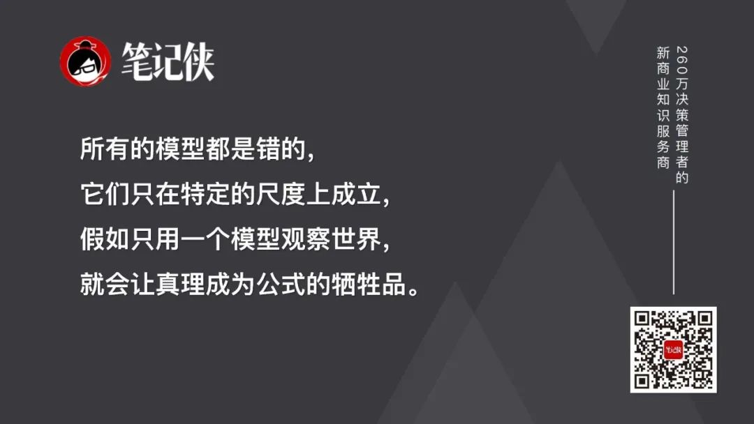 我特别喜欢统计学家乔治·博克斯说的一句话,他说“所有的模型都是错的,它们只在特定的尺度上成立,假如只用一个模型观察世界,就会让真理成为公式的牺牲品。”