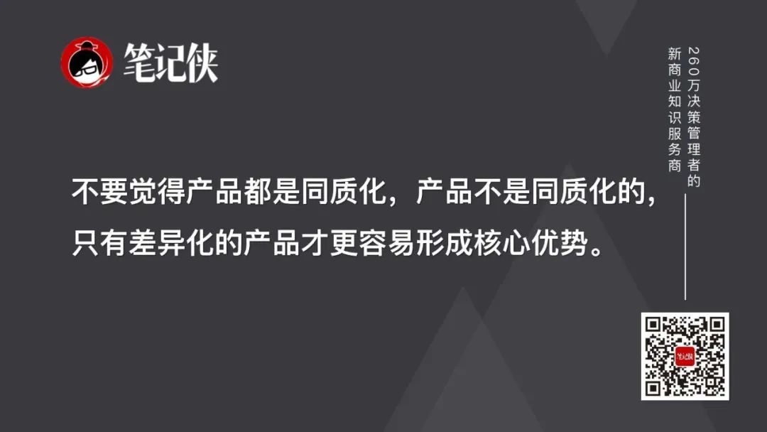 这才是真正的壁垒。不要觉得产品都是同质化,产品不是同质化的!只有差异化的产品才更容易形成核心优势。如果真的完全形成差异化,在传播上、在渠道上也有和别人不一样的能力。