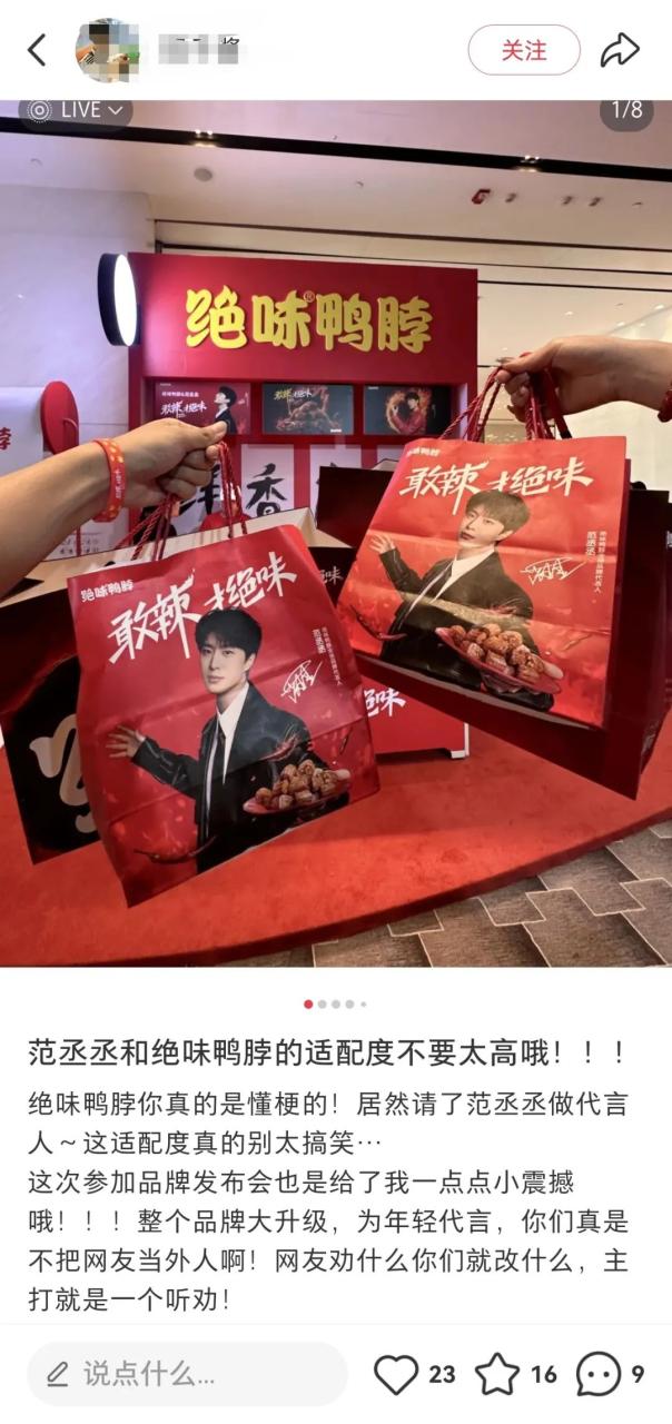 在新说唱风靡之时,选手对范丞丞一句调侃“你的脖子才是我的绝味”,让范丞丞的“天鹅颈”迅速引发网友热议,成为网络爆梗。而范丞丞也在网友的呼声下,成为绝味史上第一位“代言人”。绝味这波宠粉操作,被网友调侃称2024年“最听劝”的品牌~