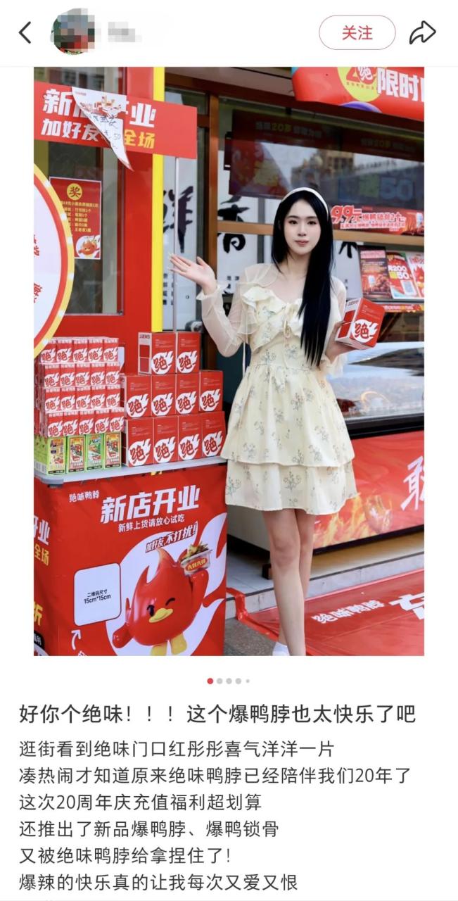 总之,年轻人的注意力在哪里,绝味鸭脖的身影就在哪里。品牌一边在深入触达多元化的年轻群体,一边从这些群体中汲取养分,将这些年轻文化内化为自己的品牌DNA。正是因为这种策略,让大家觉得这个资深的卤味品牌,一直都非常年轻非常鲜,是值得推荐给周围人的潮流icon。