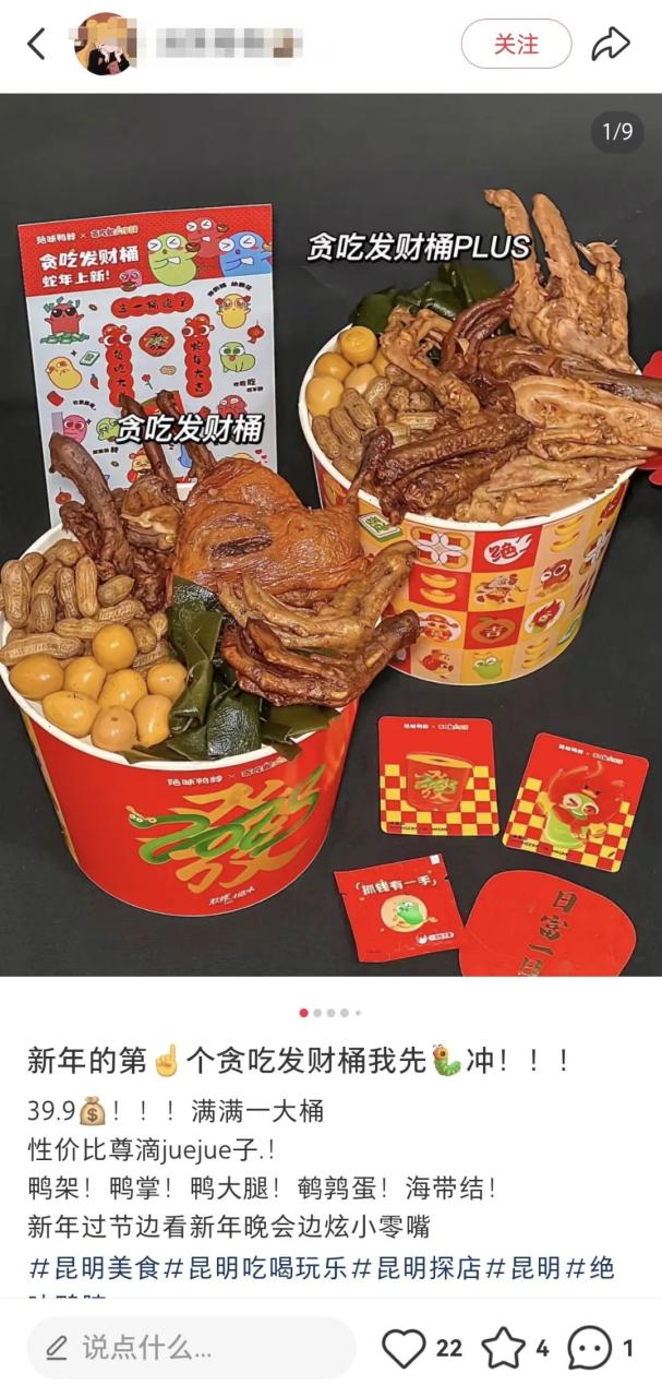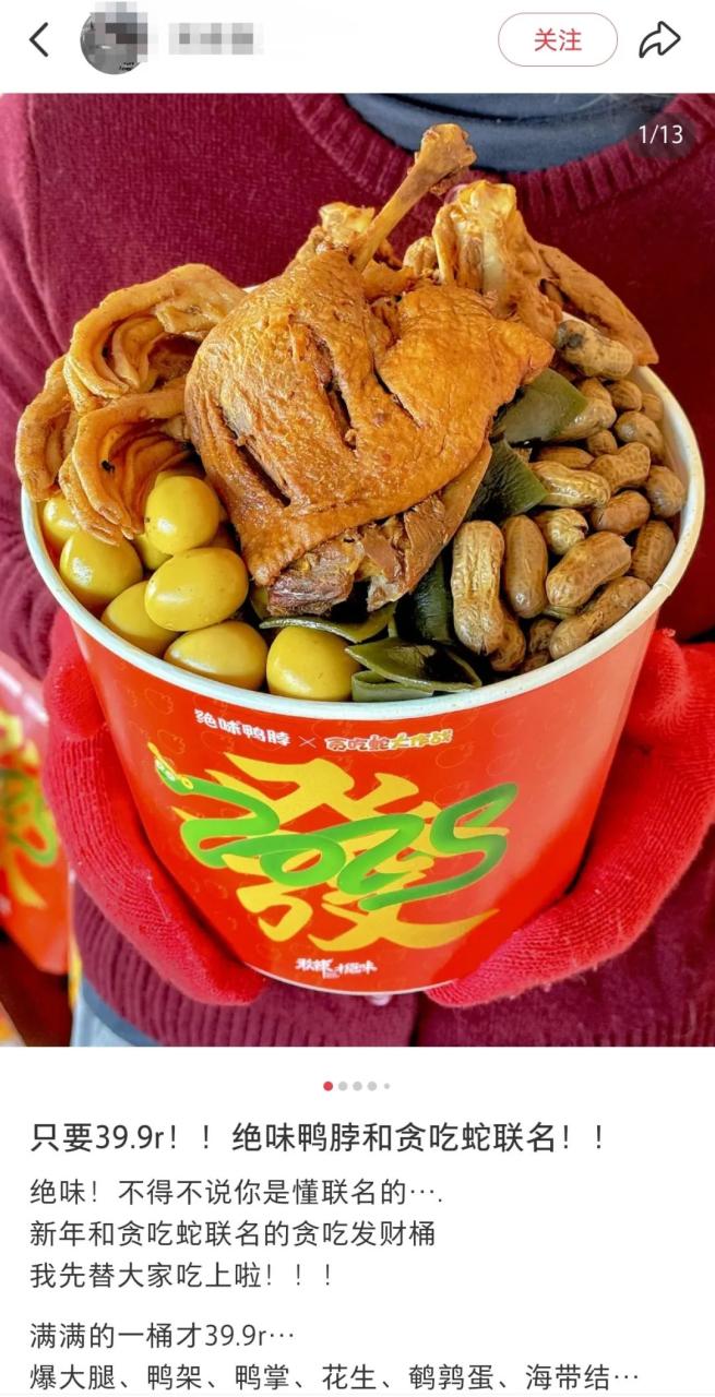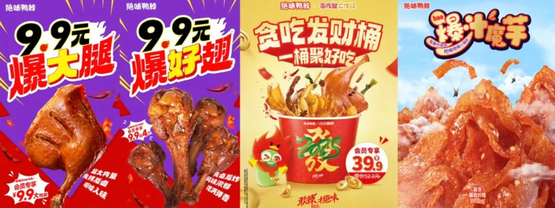 还有,在“卤味价格”被网友推上热搜时,绝味鸭脖也针对“卤味要便宜”的呼声,连续打出了“比脸还大的爆大腿”、“4个爆好翅”都仅标价“9块9”的绝杀,直接让卤味“跨入了9.9时代”。包括新年期间极致性价比的“贪吃发财桶”,39.9满满一大桶吃到爽;7.99就能拿下一大份“爆汁魔芋”,都展现了品牌十足的诚意。