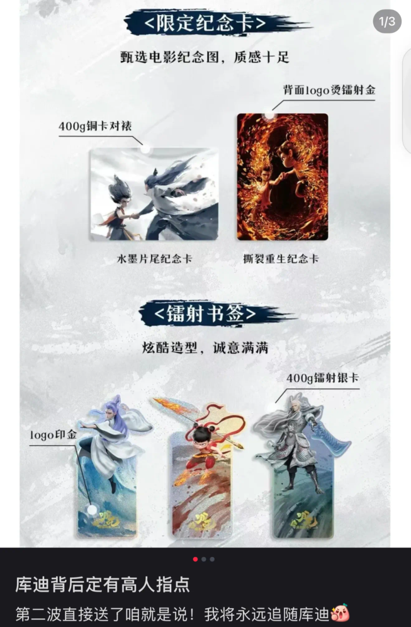 一方面,多款周边进行了创新升级,比如牵手照纪念卡设计栩栩如生,新增了龙爹敖光主题冰杯、侧面印有龙爹和申公豹形象的纸袋等均精准复刻电影名场面,被粉丝称为“授权含金量天花板”。