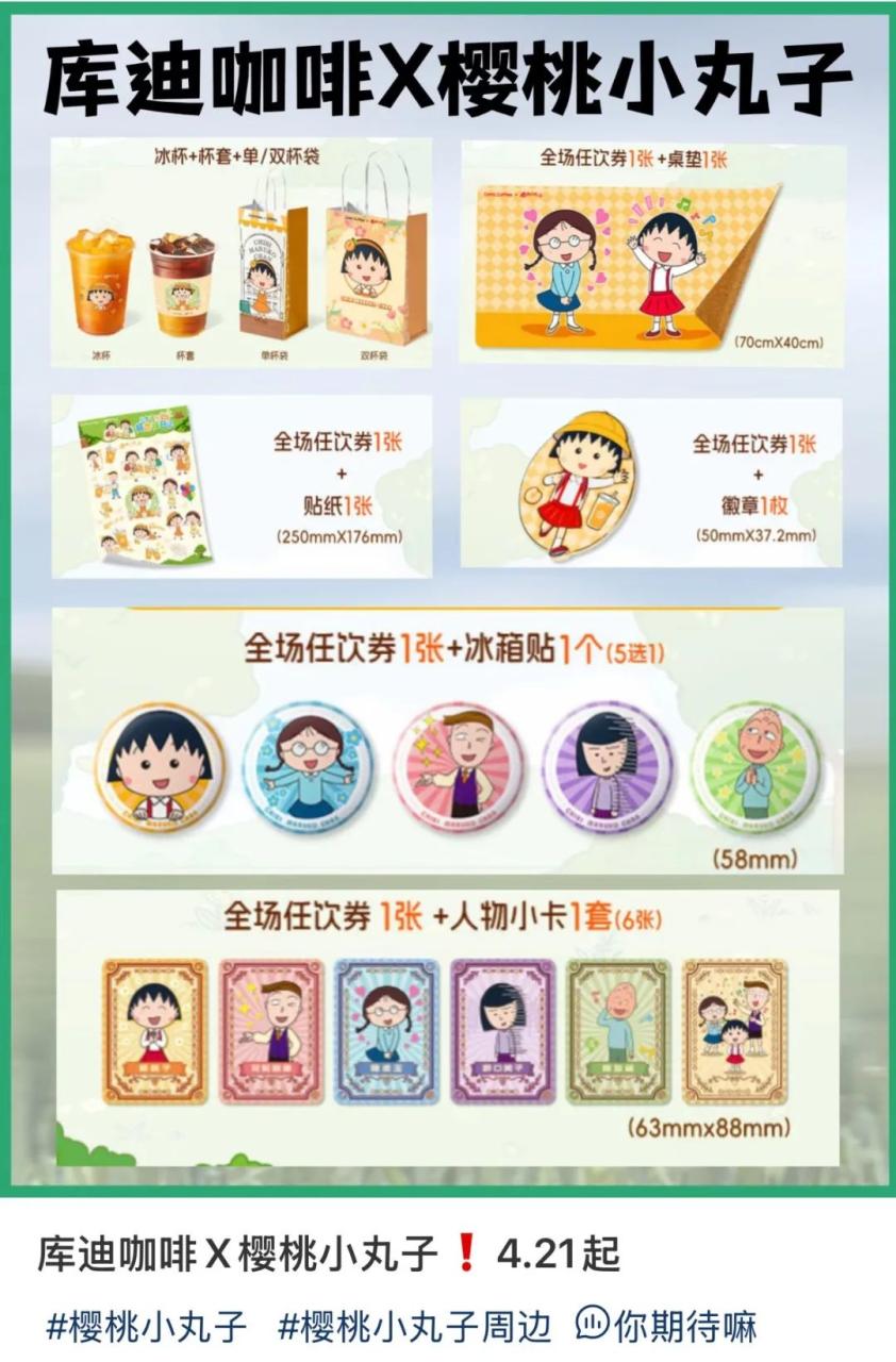 最近与《哪吒2》、樱桃小丸子的联名,亦有异曲同工之妙,精准捕捉当下年轻人的情绪价值,以高品质的产品和高审美质感的周边实现“次元破壁”,加速品牌全圈层渗透效率的同时,库迪咖啡也把IP联名从一种短期的营销模式,转变为品牌长期发展的资产沉淀。