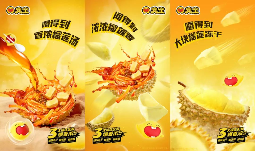 而当我们用这样的逻辑去观察今年的新品市场,会发现臭宝刚刚上新品的“三重榴莲螺蛳粉”,完美符合了我们的推演结论。
