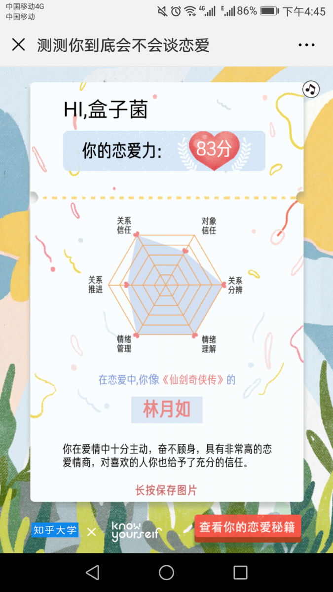 1、知乎大学×Know Yourself:测试你的恋爱力
