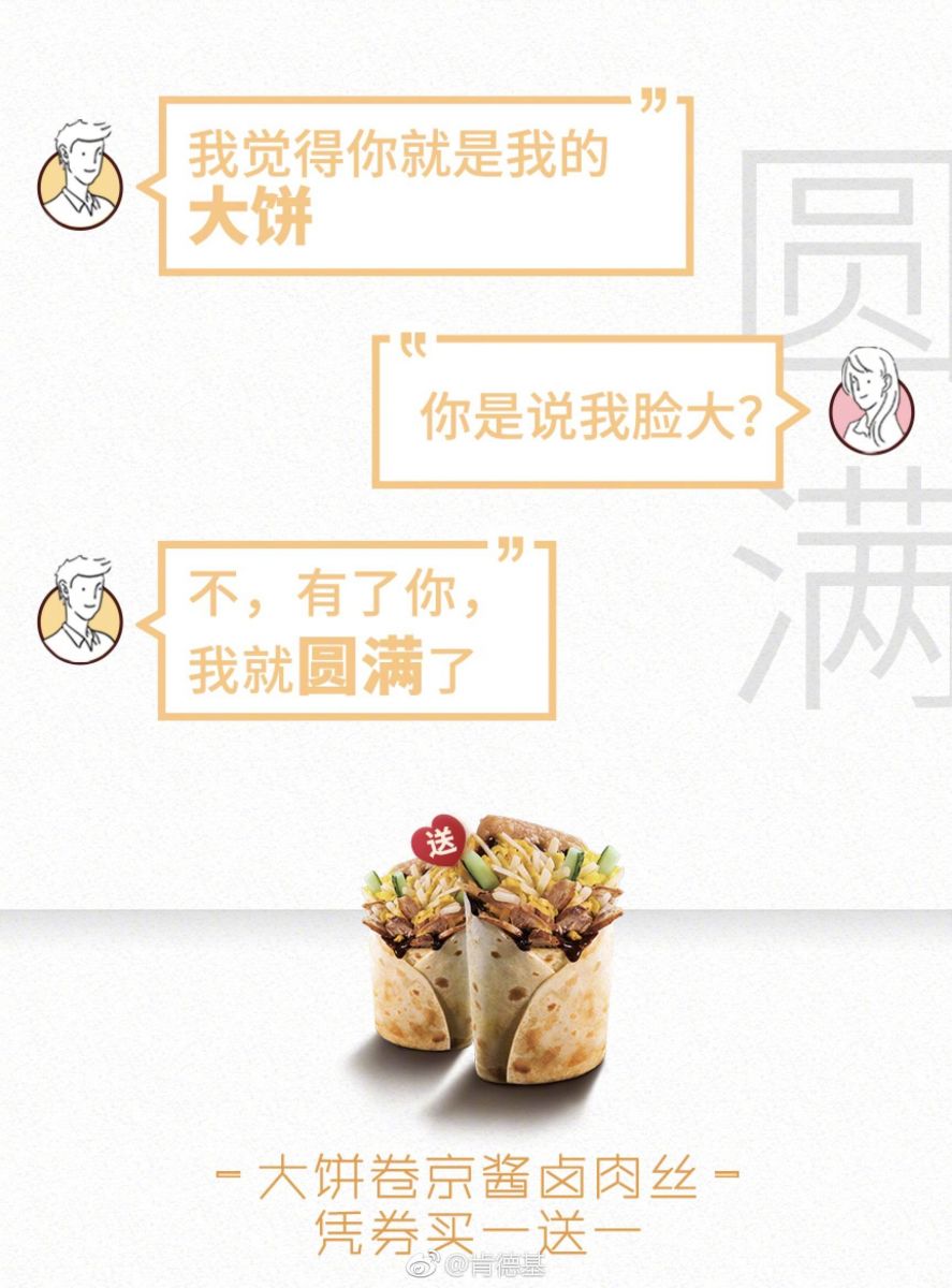 1、肯德基:“告白早餐,买一送一”