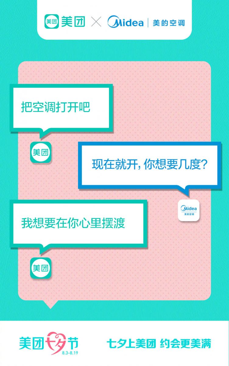 可怕的不是一家品牌对你情话,可怕的是他们组团对你进行情话攻击。美团联合77家品牌为“美团七夕节”站台打call。结合各自的业务特点,以土味情话“互撩”,组成史上最强人气CP,呈现77组“土味情话对白”。