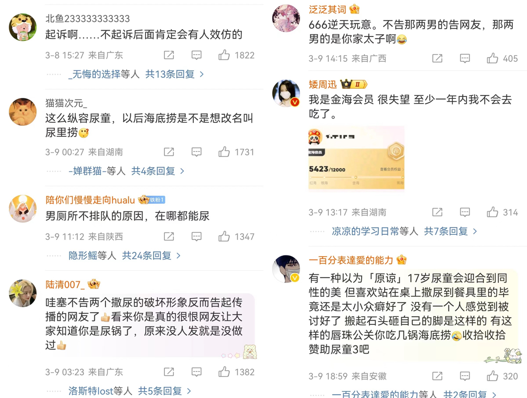 网友9:这么纵容尿童,以后海底捞是不是想改名叫尿里捞