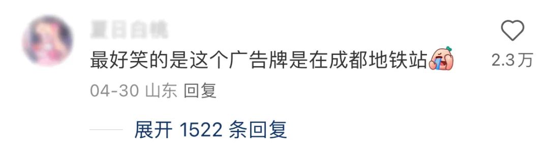 有关注广告投放地域的,“最搞笑的是,这广告牌是在成都地铁站”。